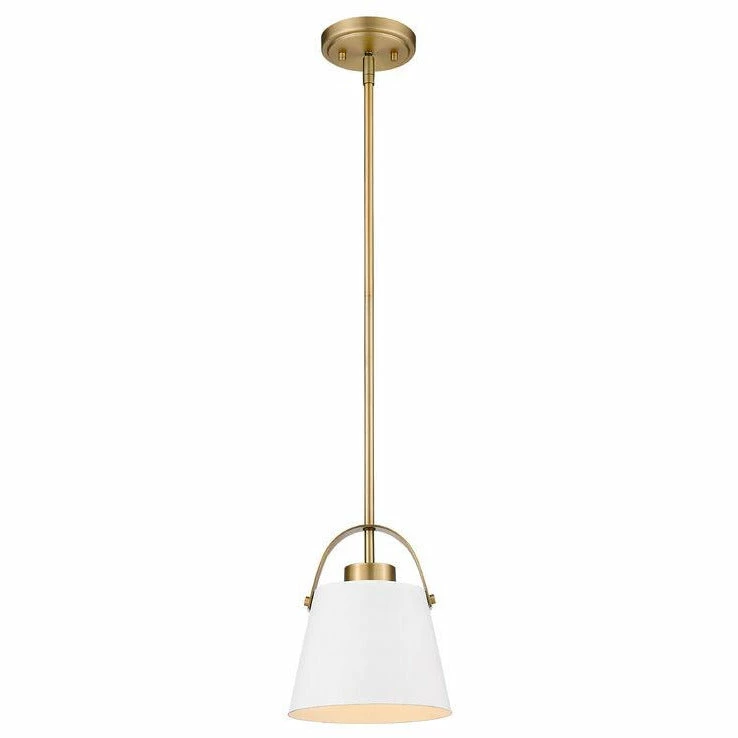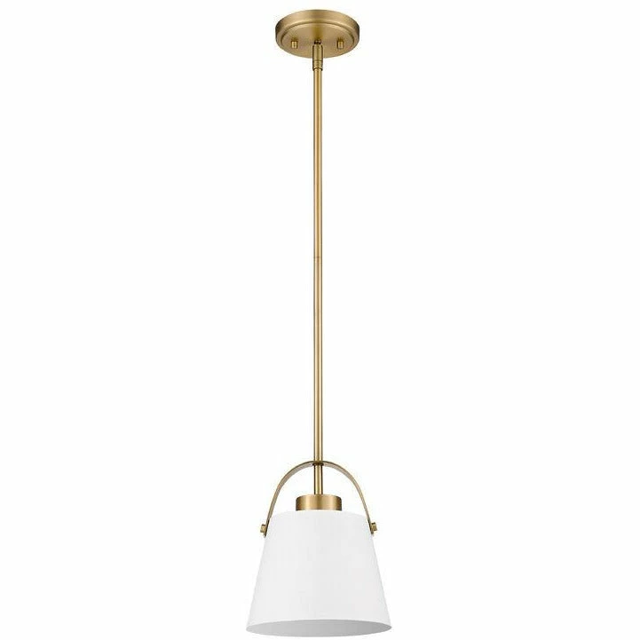 Incorporate design-forward illumination into a decadent contemporary décor scheme with this gorgeous one-light mini-pendant. Bring targeted lighting to a compact nook or reading space with a sleek fixture fashioned from Matte White and Heritage Brass finish metal, with a classic angled shade.